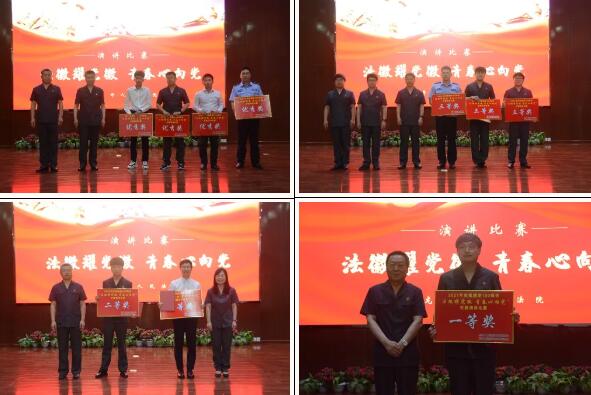 比赛现场,气氛热烈、掌声不断。参赛青年干警们紧扣演讲主题,用学党史的感悟、知党情的感恩,围绕自身工作经历和身边优秀法官干警的先进事迹,讴歌党的百年光辉历程和丰功伟绩,带领大家重温红色记忆。一句句慷慨激昂的话语,一个个澎湃人心的故事,诠释着青年干警爱岗敬业、乐于奉献的精神风貌,表达着新时代青年干警对党的祝福。经过激烈的角逐,共评出一等奖1名,二等奖2名,三等奖3名,优秀奖4名。