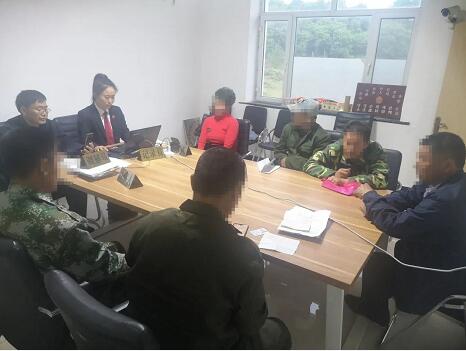 5月26日,速裁法官冒雨驱车来到永庆乡巡回审判点,采取“巡回审判点+远程视频”的方式,对周某等5名原告诉被告马某劳务合同纠纷一案进行调解。
