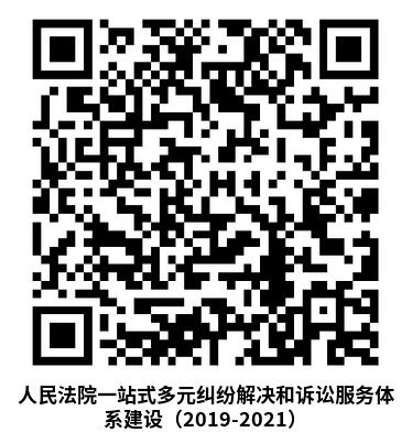 扫描下方二维码查看《人民法院一站式多元纠纷解决和诉讼服务体系建设(2019-2021)》全文内容
