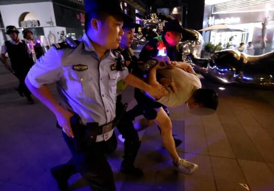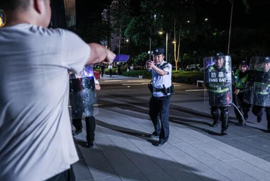 ▲侨英派出所民警辅警在重点区域开展反恐演练