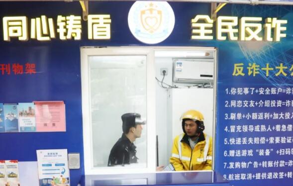 该小屋也是铁骑屯兵休整点,工作时段常驻民辅警,接待群众咨询求助,传递反诈知识,日均普及三百余人次。因在有树荫遮蔽,外卖及快递小哥多在此歇脚。民警对他们进行培训,发展他们成为兼职“反诈宣讲员”。在派发包裹时给客户带去反诈宣传,推动同心筑盾新实践。小屋设立后,迅速成为官林镇区的小地标,达到了以点带面、人人皆知的效果。