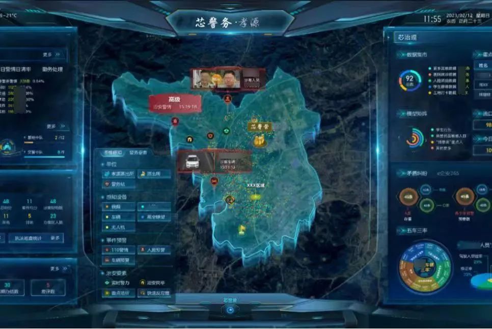 整合所内资产、访客、消费、训练、能耗等数据实现一屏管理,汇聚勤务、执法、治理、服务、警营等业务和数据实现基层警务一屏管业务,双屏赋能基层派出所“智慧小脑”。