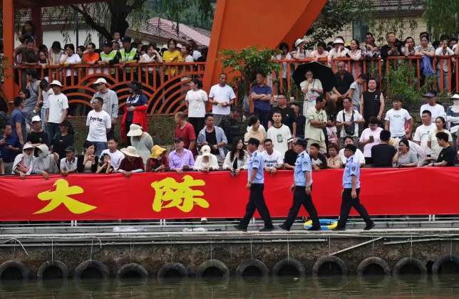 "竞渡齐登杉板船,布标悬处捷争先。"端午当天,大陈国际龙舟赛火热开赛。江面上,龙舟如离弦之箭,健儿们挥桨劈浪;岸边上,观众欢呼呐喊,声震云霄。而在人群之中,义乌公安的藏蓝身影早已筑起一道"平安堤"。他们值守危险点位、巡查密集区域、随时应对突发情况,确保赛事安全有序,让激情与平安同行。