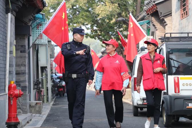 北京西城民警和“西城大妈”在社区巡逻。(北京市公安局供图)