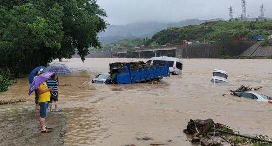 武夷山市城西村龙安谷一户外停车场被水淹没