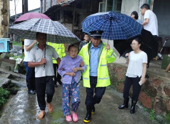 邵武316国道吴家塘安家渡大桥路段水毁塌方严重,派出所民警在该路段进行指挥疏导车辆通行,帮助抛锚车辆驶离水淹路段。