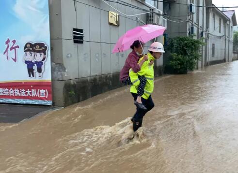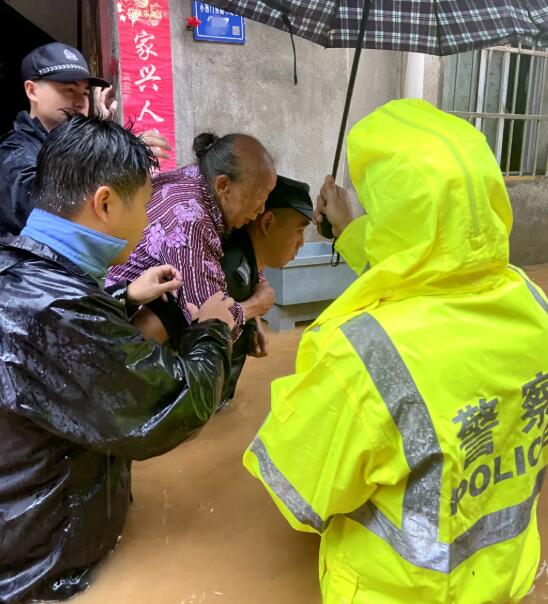 图片防汛的险情在哪里,民警就出现在哪里;群众的呼声在哪里,民警就奔向哪里。邵武水北街道太保路社区居民楼被淹,多名群众被困家中。水北派出所、平安巡逻队迅速集合警力,奋不顾身营救受困群众。