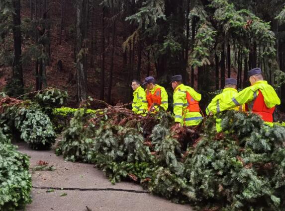 图片遭受暴雨侵袭,邵武多处路段因塌方、树木倒伏,严重影响道路交通安全。邵武警方多警种部门配合,通力协作,及时恢复道路通畅。