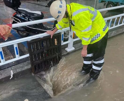 邵武市严羽大道路段出现内涝,影响车辆通行,交警大队及时组织警力在水淹道路两侧疏导交通,指挥车辆有序通行。同时对排水口进行清理,有效缓解路面积水情况。