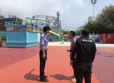 何厝派出所民警对辖区游乐场内多个游乐设施,进行安全隐患排查。