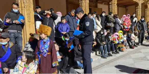 2月15日,互助县佑宁寺正月十五“观经会”“晒佛”等传统佛事活动如期在寺院举行,从四面八方赶来的信教群众络绎不绝,互助县公安局五十派出所在认真做好活动现场安保工作的同时,紧紧抓住群众集会的有利时机,组织派出所联合县局相关部门执勤民警在活动现场开展以维护民族团结、预防电信网络诈骗、安全防范为主要内容的宣传活动。
