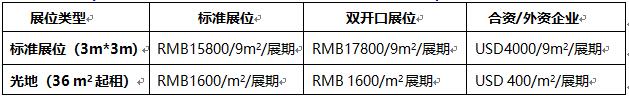 展位价格:(赞助方案、展馆现场广告及赞助详细方案请来电索取)