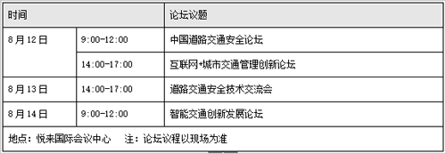 交博会期间还将举办中国道路交通安全论坛、互联网+城市交通管理创新论坛、道路交通安全技术交流会、智能交通创新发展论坛等,通过政策发布、行业规划展望、技术交流等活动,使出席论坛的政府部门、科研单位、企业代表和行业专家分享新的道路交通安全政策法规、产品方案以及交通安全科研成果。