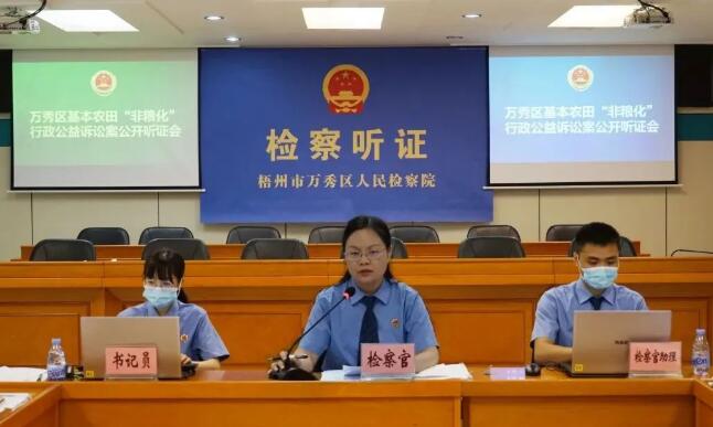 本次听证会围绕相关职能部门在收到检察建议后,对万秀区夏郢镇基本农田“非粮化”违法现象的监管、整治情况进行公开听证,在推进检察建议落地有声的同时,以公开促公正、用听证赢公信。