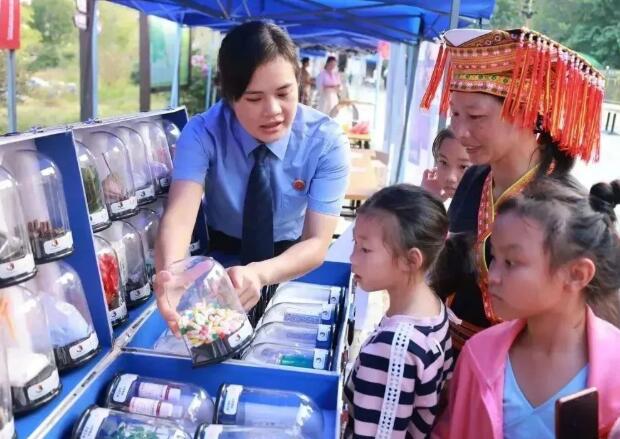 “检察官们将这些仿真毒品带到瑶乡,让我们大开眼界。想不到现在毒品都伪装得这么狡猾,什么奶茶、冰糖都有,如果没见过,小孩子真的很容易上当。我得赶紧叫我儿子女儿过来看看。”现场不少群众闻声而来,一位瑶族阿姐在认真地听完干警介绍常见毒品和新型毒品的外观特点后,又带上自己的孩子前来学习禁毒知识。现场其他群众也纷纷表示,通过这次学习,自己对毒品有了更新的认知,在今后的生活中也会多多注意防范。