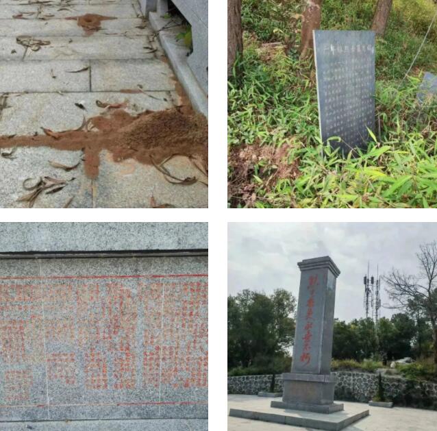 在“回头看”工作中,龙圩区检察院发现某烈士陵园在翻修后,将拆卸下来的原标注“革命烈士墓志铭”“爱国主义教育基地”标识牌,随意丢弃在草丛中;烈士陵园平台上有多处蚂蚁窝,落叶等垃圾无人清扫,前往陵园的道路上没有指示牌等。