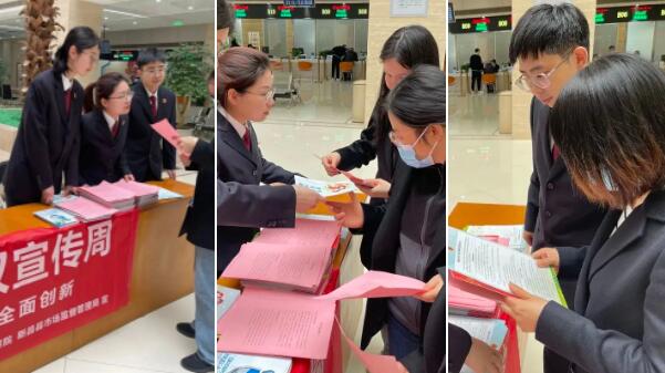 近日,新昌县检察院联合县法院、市场监督管理局,在行政服务中心一楼大厅开展知识产权法治宣传活动,悬挂知识产权相关宣传条幅,为市民朋友们送上《知识产权小贴士》等宣传手册,并积极提供相关法律咨询,提升社会公众“尊重知识、崇尚创新、诚信守法、公平竞争”的知识产权文化意识。