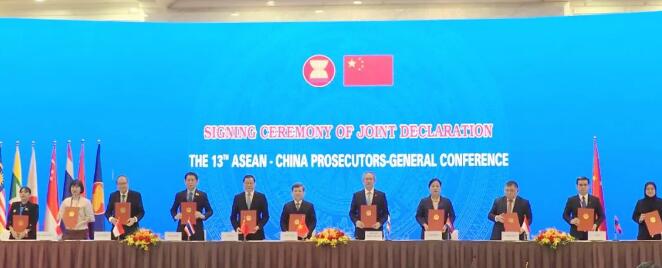 会议闭幕前,与会各国检察代表团团长共同签署了《第十三届中国—东盟成员国总检察长会议联合声明》,充分肯定这一会议机制对加强东盟成员国检察机关和中国检察机关在共同打击跨国犯罪方面的重要性,决定在刑事司法协助、检察人员培训和专家交流、法律文件和检务信息共享等方面进一步加强合作,迅速有效地打击跨国犯罪特别是高科技犯罪,以确保中国及东盟各成员国的和平、稳定、安全和可持续发展。