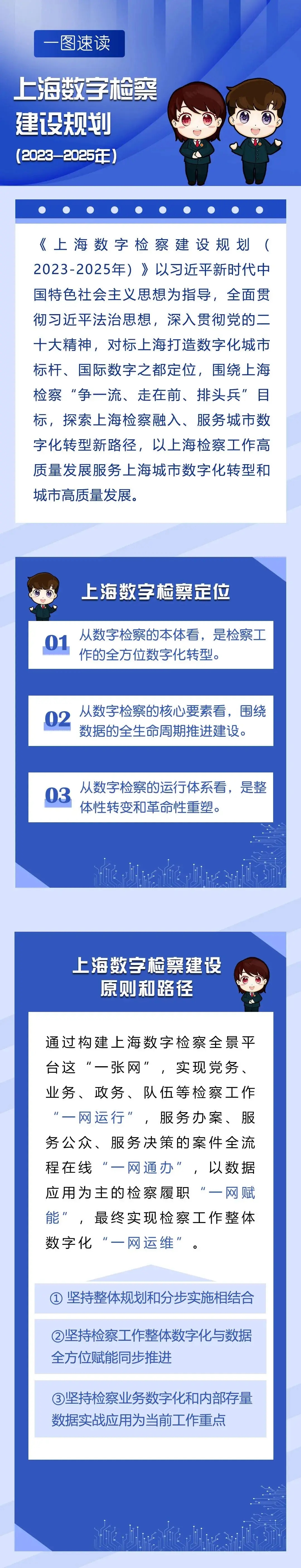 3月28日,上海检察院发布上海数字检察建设规划(2023-2025年),用一图速读的形式介绍了2023-2025年上海数字检察定位、建设原则和路径、总体目标和重点任务等多项纲要。