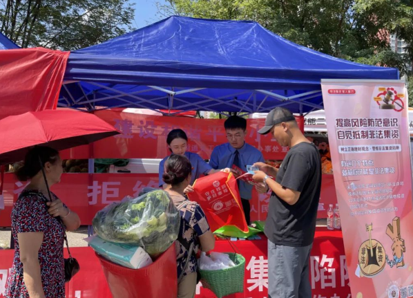 为了深入实施并严格执行《防范和处置非法集资条例》,有效提升民众对于非法集资风险的防范意识与辨识能力,8月14日,贵阳市检察院积极响应市委金融办携手多家机构的号召,深入参与了防范非法集资“下乡行”宣传教育活动。活动巧妙利用花溪区陈亮村“赶集日”这一民俗盛况,直接在集市现场开展了一场贴近民众生活的普法教育活动。