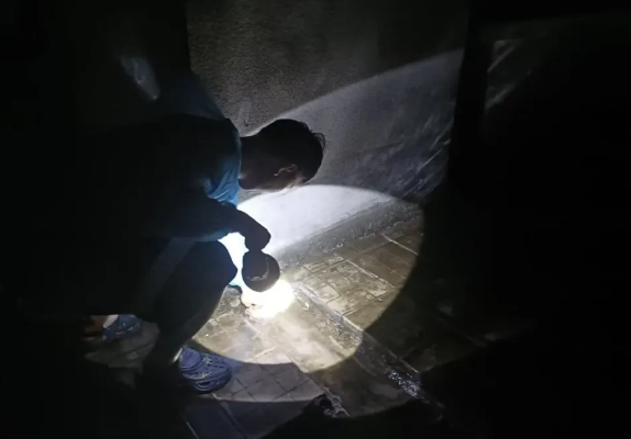 9月7日凌晨,北海市检察院值守干警检查办公楼露天平台排水情况,清理堵塞的杂物,保障正常排水。
