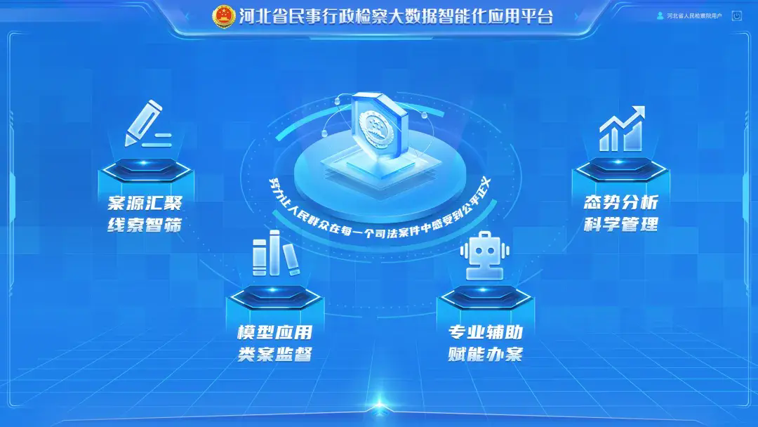 为深入贯彻落实最高检数字检察战略,高质效办好每一个案件,努力让人民群众在每一个司法案件中感受到公平正义,河北省人民检察院研发建成了贯通省市县三级检察院的民事行政检察大数据智能化应用平台(以下简称“民行数智平台”)。