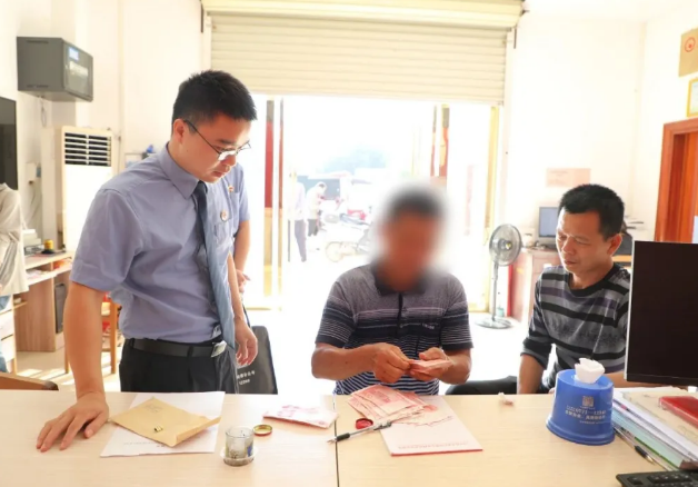 考虑到李某家距离贵港市区较远,出行多有不便,检察官们决定亲自前往李某所在的村委会,在村干部的见证下,将追回的1.4万元被盗耕牛赔偿款亲手交到了李某的手中。"