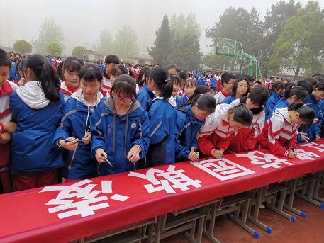 讲座结束后,全体师生代表在“拒绝校园欺凌 预防校园暴力”宣传条幅上签名承诺。