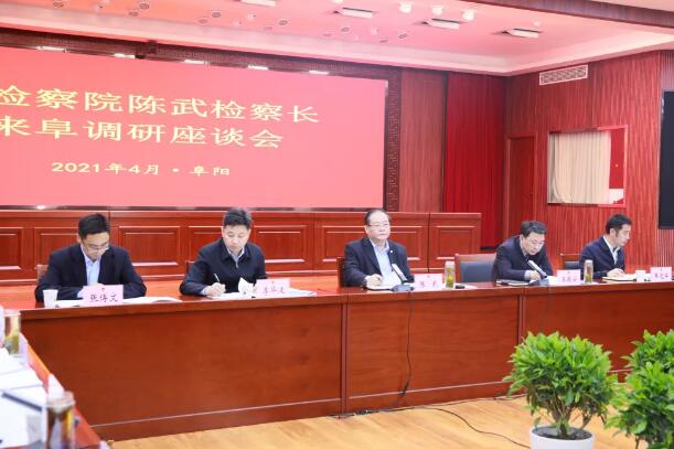 在阜阳市及颍州区检察院,陈武察看了检察服务大厅、公益诉讼指挥中心、未检工作室、新媒体工作室等,询问律师互联网阅卷、干警队伍结构、智慧检务等情况,深入了解教育整顿学习教育和查纠整改工作进展,并与该市两级检察院检察长进行座谈,“盘点”工作亮点,称赞阜阳市两级院认真践行“双促进、两不误”要求,得到了中央督导组及地方党委的充分肯定。