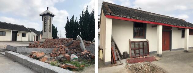 位于嵊州市长乐镇沃基村的中共浙江省工作委员会旧址多处大木构件如柱、梁、桁、枋槽腐朽霉变;屋面走样,局部渗漏;墙体粉层空鼓、剥落;门窗、雕花件残破缺失;部分楼板霉腐和残缺,整体建筑破损情况较为严重,原有的建筑结构与风貌受到严重影响。