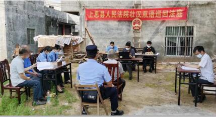 考虑双方都是行动不便的老人,且所在地离上思县城较远,为保障司法程序正常进行,上思县检察院与上思县法院经协商决定,将公诉庭搬到被告人与被害人的家门口,几张小桌子和几个小凳子便形成了庄严肃穆的巡回法庭。