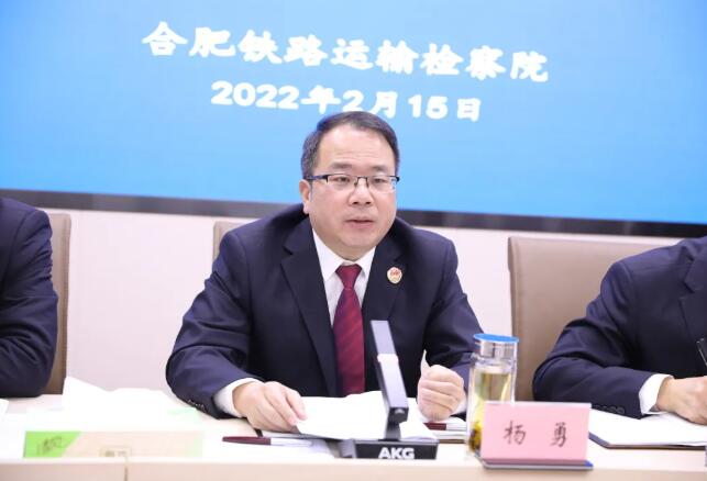 2月15日,合肥铁路运输检察院召开全体干警大会,全面盘点2021年工作情况,谋划2022年工作任务。合肥铁路运输检察院分党组书记、检察长杨勇参加会议并讲话。