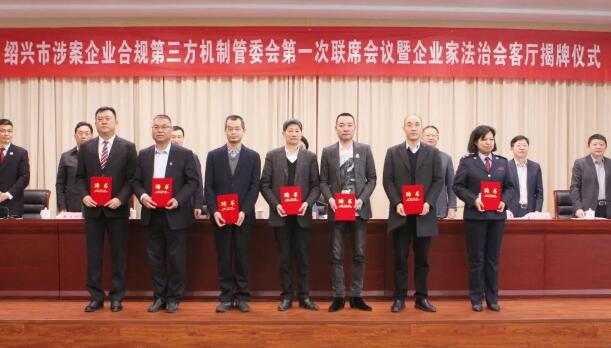 3月3日,绍兴市涉案企业合规第三方监督评估机制管委会(以下简称“第三方机制管委会”)第一次联席会议暨企业家法治会客厅揭牌仪式在绍兴市行政中心举行。绍兴市委常委、统战部长叶卫红,市检察院党组书记、代检察长程曙明出席会议并讲话。市司法局局长黄文刚,市财政局党委书记、局长金水法等第三方机制管委会25家成员单位相关负责人及人大代表、政协委员、企业家代表、商(协)会代表等参加。会议由市委统战部副部长、工商联党组书记周志刚主持。