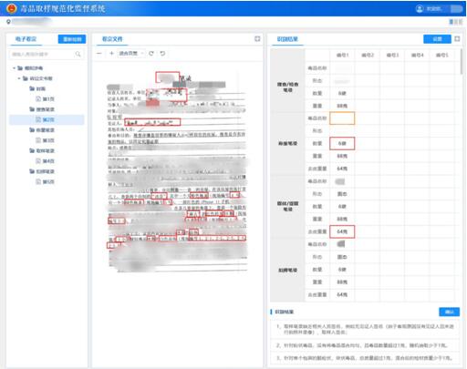 规范毒品犯罪案件毒品取样监督平台的设计主要针对毒品案件办理过程中取样不规范行为开展法律监督。虽然相关司法解释对毒品取样进行了详细规定,但基层侦查人员在毒品案件办理过程中仍然时常发生取样不规范的情况。该平台设计为对毒品案件中的搜查笔录、提取笔录、扣押决定书、扣押清单、封存笔录、称量记录等进行自动识别,与取样规范化相关规定进行比对,对有问题和瑕疵的笔录,检察官可结合取样视频判别取样过程的合规性,辅助检察官对毒品案件取样过程精准实施法律监督。并可对某个区域一段时间内的毒品案件取样不规范的情况进行智能统计和分析,为检察机关监督公安机关提升毒品案件办理质量提供数据支持和决策依据。