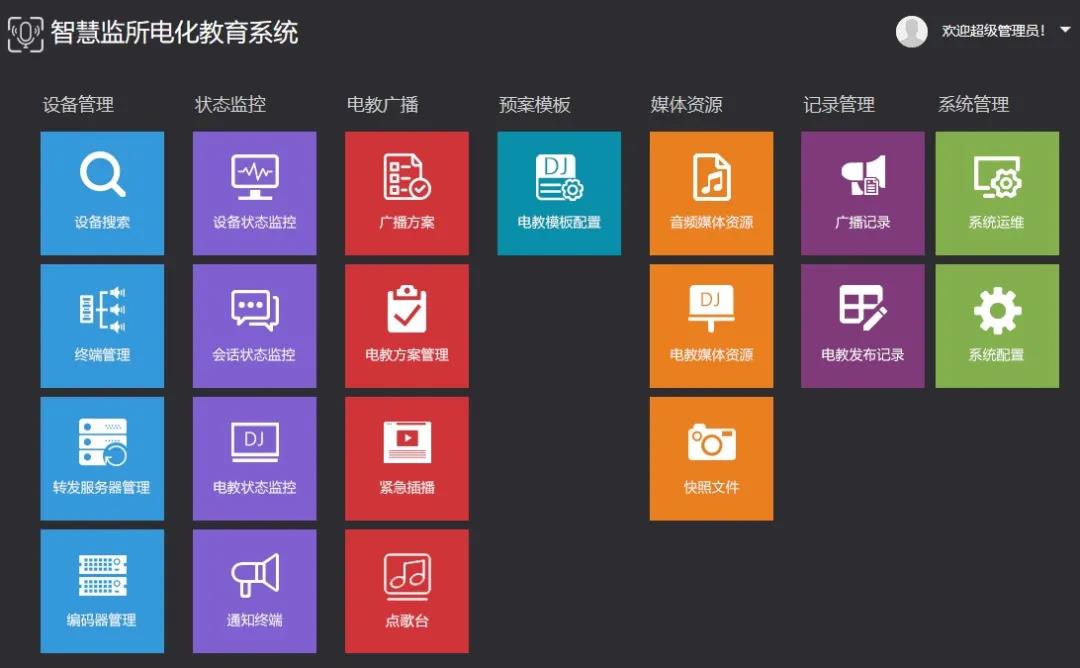 美电贝尔智慧监所教育系统方案解决对每个监舍播放电视、广播喊话、政策宣传以及定时任务播放的功能,是融合电教视频播放和音频公共广播为一体的管理平台,对每个监舍的电视机和音箱进行管理控制。