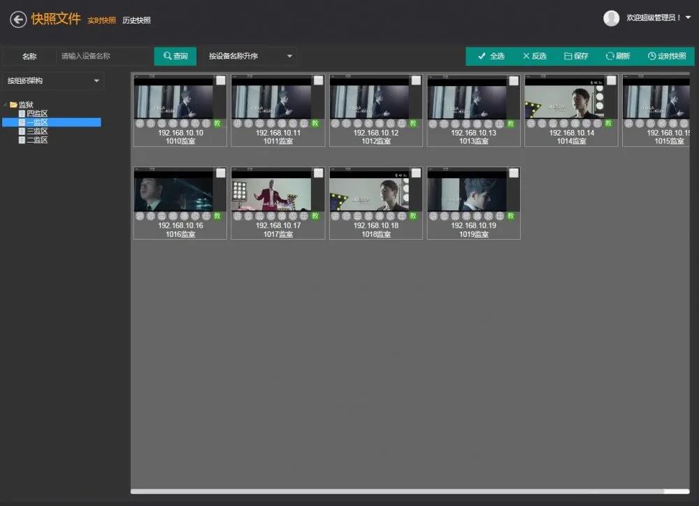 实时快照(远程监控):平台可以实时监控所有监室电教终端的播放画面情况,可以非常直观的了解各监室当前电视机播放内容和动态。