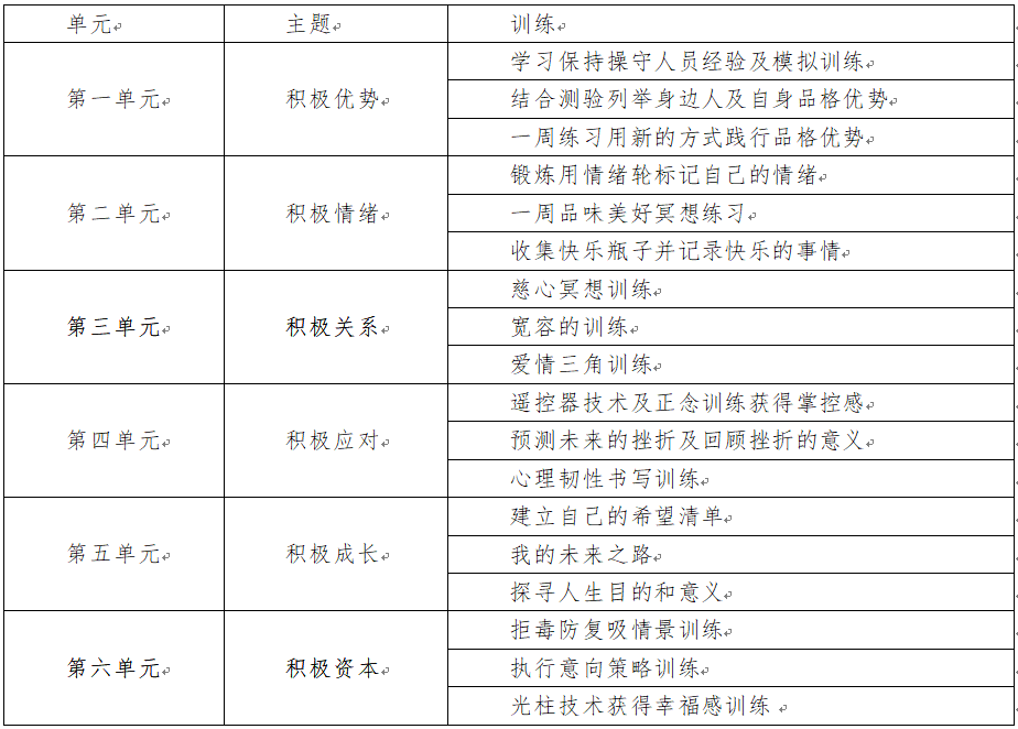 表1 积极心理训练体系构建实施方案