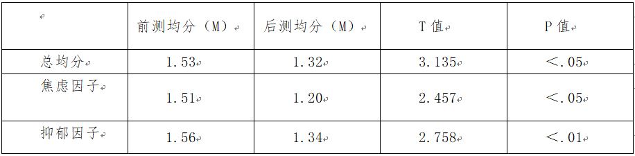 心理量表结果采用配对样本T检验,检验结果如下: