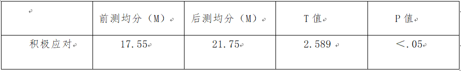 应对方式中积极应对后测分数显著高于前测分数。见表3。