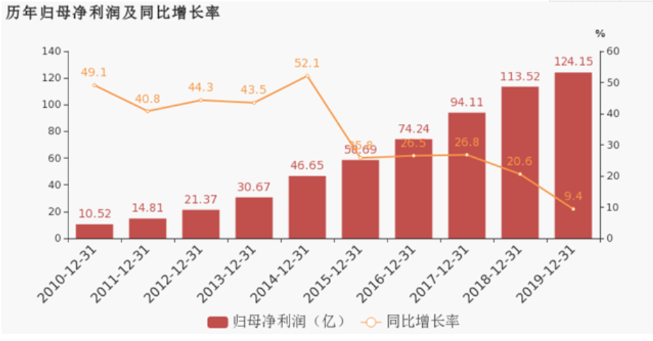 根据海康威视发布的历年年报来看,海康威视从2010年营业总收入不足40亿元到2019年突破500亿元,达到576.6亿,十年间实现十几倍的增长。另外归属于上市公司股东的净利润也从10亿元达到2019年124多亿元。