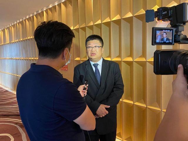 图/睿帆科技总经理于海中接受现场媒体采访。