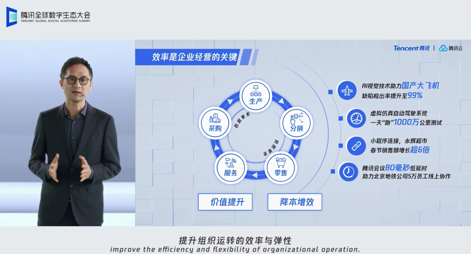 汤道生称,向“数字”要“效率”,是产业重塑的必然选择。在企业经营管理中,数字化一方面可以提高生产制造、供需匹配、维保服务的效率,最终降低经营成本、提升竞争力;另一方面,数字化也能够提升组织运转的效率与弹性。