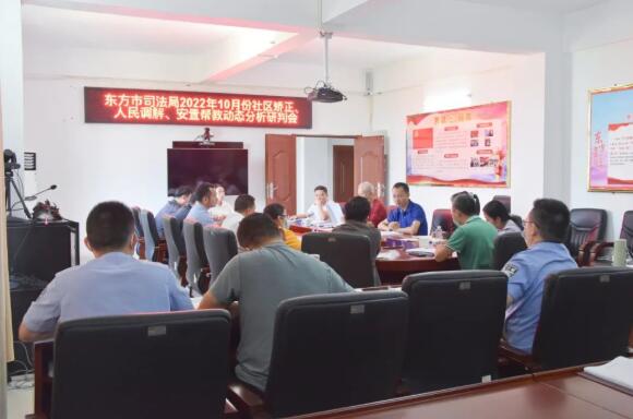 10月18日上午,东方市司法局召开社区矫正、人民调解、安置帮教动态分析研判会。受市司法局负责人关远平委托,局党组成员、副局长文峰主持会议并讲话。