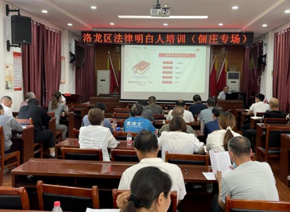深入实施“法律明白人”培育工程。制定印发《洛龙区司法局关于规范法律明白人培训工作的通知》,构建区、乡镇(街道)、社区三级培养机制,对各镇(街道)司法所“法律明白人”培训任务实化细化,多层次开展“法律明白人”培训会,确保培育工作做实做细,充分积极发挥示范引领作用,影响和带动身边群众尊法学法守法用法,提高基层群众法治水平。