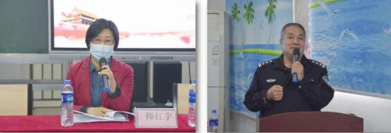 ▲“1+1”中国法律援助志愿律师师红宇(左)、省厅选派民警杨帅林(右)进行授课