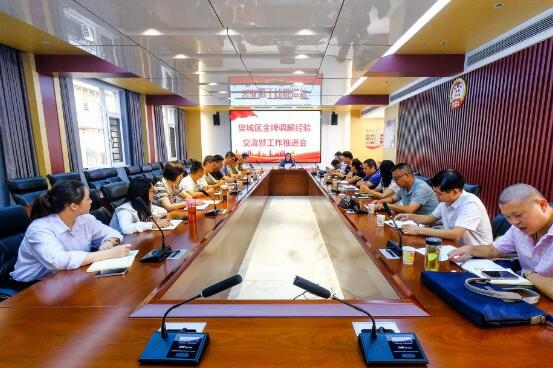 为了进一步完善多元化的纠纷解决机制,襄阳市樊城区正在着力打造一批备受人民群众认可的金牌调解室,以参与基层社会治理现代化建设。8月22日,襄阳市樊城区在屏襄门街道红光社区人民调解委员会召开金牌调解经验交流暨工作推进会。区司法局党组成员、副局长梅芳主持会议,与调解人员就工作中的不足和方法进行了现场分析研判。全区各司法所所长及辖区5个金牌调解室的相关人员等20余人参加了会议。