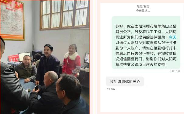 2020年12月15日,恩施市太阳河公共法律服务站的工作人员给61名农民工打电话、发送短信提醒查收追回的工资。