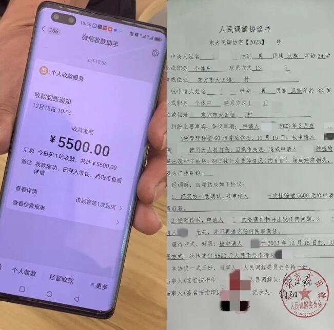 近日,东方市司法局大田司法所成功调解一起无人机喷洒农药引发的损害赔偿纠纷。
