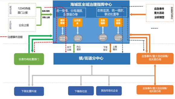数字海城全域治理指挥平台整体业务流程如下所示: