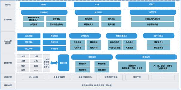 在各小场景建设中,从管理对象、管理场景入手,明确管什么、怎么管,防什么、怎么防等问题。一是厘清业务逻辑。针对重点人群,由各相关业务部门对管控的关键环节、业务职责进行梳理,搭建专有预测预警业务模型,对监管对象进行大数据画像,确保从专业角度出发开展专业预防。二是厘清运算逻辑。在运算层级上,建立模型—场景—板块层级运算体系,构建知识图谱,设置规则引擎,形成自下而上、多点碰撞的运算能力。例如:在精神障碍患者场景,针对精神障碍患者的特征,构建了专有的“精神障碍患者全位感知模型”,从患者特征、共性规律、行为活动、环境影响四个方面,借助规则引擎,以及分词分类算法、语义识别、事件九维分析等技术,发现了多起精神障碍患者涉及驾车、家暴、购重点物资、随访记录缺失等情况;在瓶装液化气场景,构建了“瓶装液化气储配用预测模型”。以气瓶销售订单为主线,围绕用户液化气使用过程,按照气瓶的流转,打通了“储配站到供应站过程中的企业、车辆、运输、充装,以及供应站到用户过程中的配送、回收、安检、使用”等各个环节,从而发现在运输、使用过程中可能出现的各类风险;在山花瞭望场景,针对社会治理中婚姻家庭纠纷这一重点,将单一的重点人研判分析,提升到对重点人所在家庭户的预测预警,形成重点家庭5000余户。同时对困难家庭、空巢老人及留守儿童、残疾家庭等涉关怀对象家庭标签化管理。创新以家庭户为基础单元,构建妇联、法院、公安、民政等多部门线上线下协同机制,对“社会治理风险研判分析”架构进行了完善和补充。